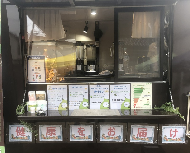 当日はあいにくの雨でしたが、それでもスタンプラリーをしながらご来店してくださるお客様も多かったですよ。ありがとうございます。グリーンスムージー・ふれふれポテト・100%ベジタブルカレー・具なしプラントベースラーメンをご提供させて頂きました。特にふれふれポテト”グリーンエナジー味(クロレラパウダー入り)”がよく出ました。これからもあなたの街のどこかで、ご健康をお届けして参りますので、BEYOND号を見かけたらお気軽に声を掛けてくださいね。そうなればとてもうれしいです。
