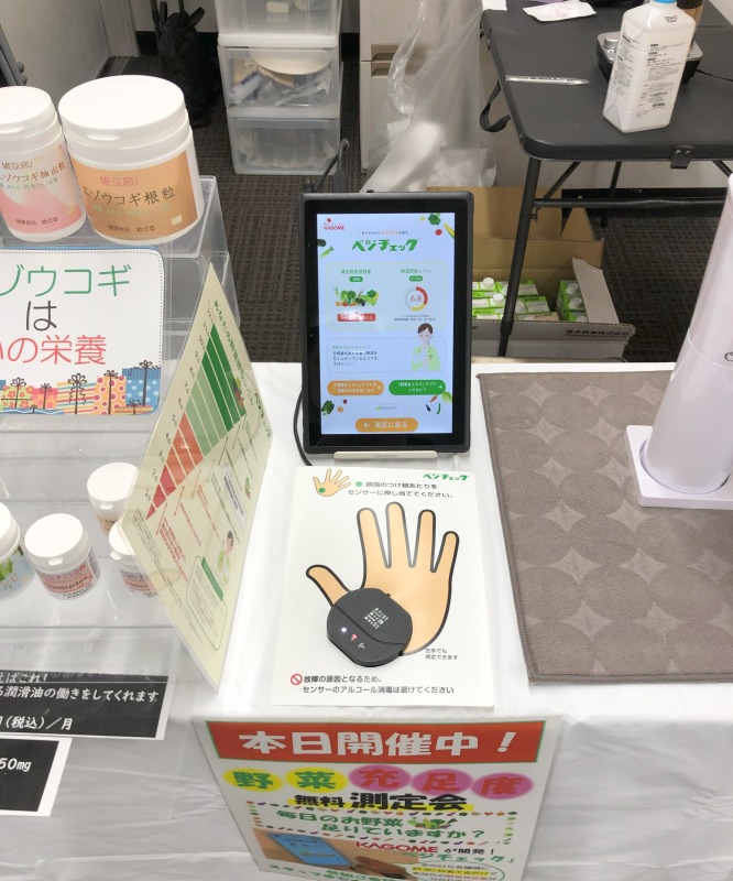 今回のイベントにこられた方々は、ベジチェック指数が高い傾向でした。お食事内容をお聞きすると、毎日野菜ジュースや健康食品、サプリメントなどを飲まれているとのことです。MEGURUグリーンスムージー”やすらぎ”も好評で「おいしい」とたくさんの方々にお声を頂くことができました。