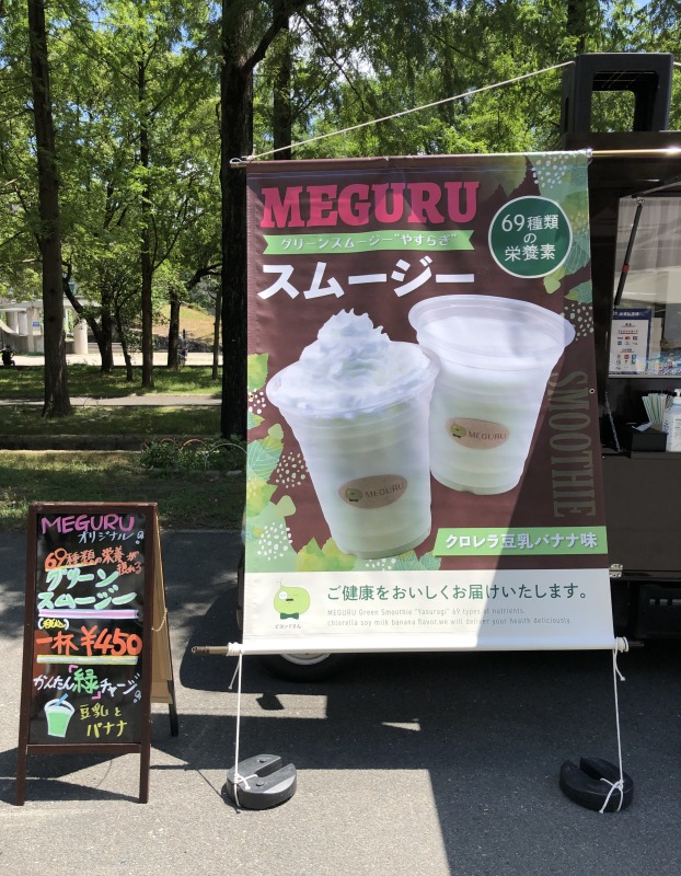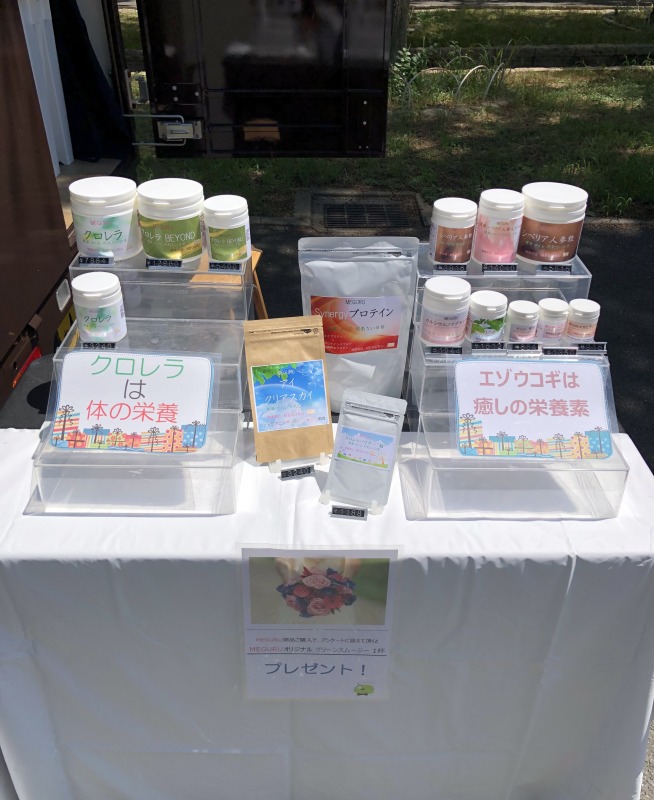 蒸し暑さもあってか、MEGURUグリーンスムージー”やすらぎ”がよくでました。その中で、本商品にご興味を持っていただけた方々と、お話しできたことが印象に残っています。またプロテインについてのお話が比較的多かったのは、スポーツ=筋肉=プロテインとつながるからだと思います。